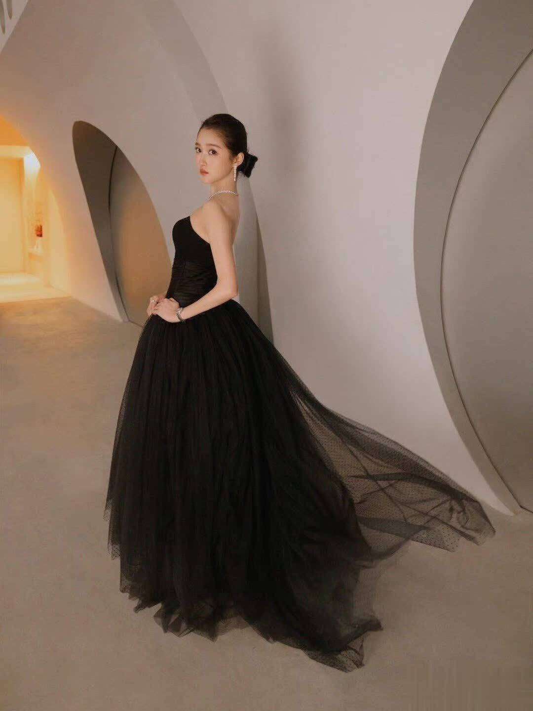 2026年1月19日,关晓彤在深圳时尚32周年时尚之夜的红毯上,以一身复古女爵风格的造型震撼登场,瞬间引发了网络的热议与关注。她首次挑战了黑色宽檐礼帽的造型,搭配了一袭定制的露肩黑纱长裙,外加一件短款廓形皮夹克,整体造型尽显高贵与冷艳。全黑色系的搭配,完美勾勒出她的肩颈线条和九头身的黄金比例,散发出浓烈的复古魅力,仿佛穿越回上世纪的优雅与神秘。